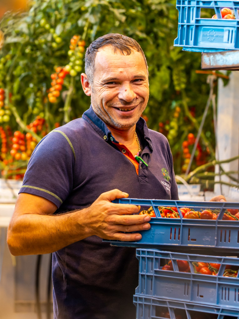 Tomatoes, and nothing but tomatoes. But what it all starts with is people. People with passion. With ambition. And with guts. Therefore: We care for people.
